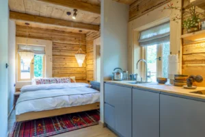 Znajdziecie ją zaledwie 5 minut od Krupówek, tuż za drewnianym kościołem Matki Boskiej Częstochowskiej – najstarszym w Zakopanem. W cichej, bocznej uliczce, nazwanej nazwiskiem genialnego Kazimierza Kaszelewskiego, który był budowniczym wielu kościołów w Zakopanem i Kościelisku i zainicjował postawienie krzyża na Giewoncie. Dom stoi pod numerem jeden i kryje się przed zgiełkiem turystycznej miejscowości. Jeśli tylko będziecie mieć ochotę, pomożemy Wam odkryć nasze Zakopane, nasze ulubione szlaki i smaki. Zapraszamy do domu pachnącego drewnem.